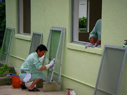 アルミサッシガラス清掃状況